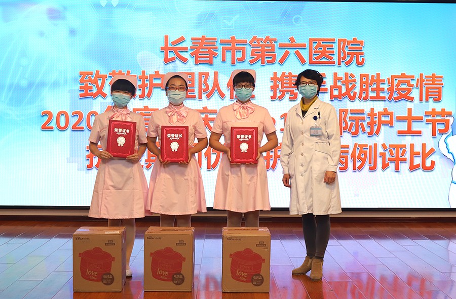 随后,现场还进行了“穿脱隔离衣视频比赛”活动颁奖。该活动是由院工会、护理部和感染科联合组织,目的是在当前特殊时期,为提高防护效率,确保护理人员及病人的安全,利用医院远程平台开展非集中式现场比赛的方式进行。
