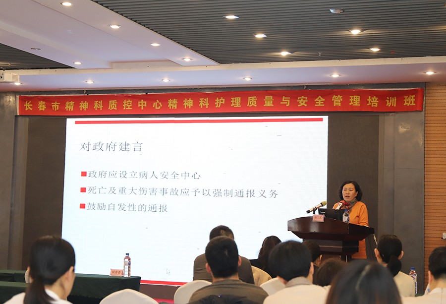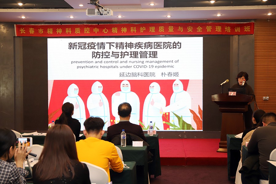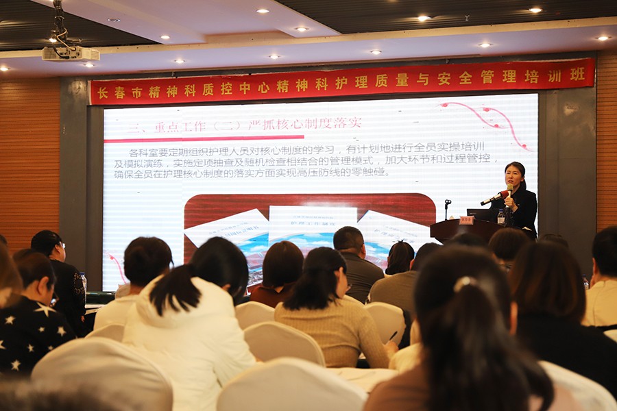 培训会上,长春市精神科质控中心主任、在线德州扑克网 副院长张延赤,延边脑科医院护理部主任朴春姬,吉林省神经精神病医院护理部主任侯春香,在线德州扑克网 质控科科长孙兰英,在线德州扑克网 感染科科长徐萍,在线德州扑克网 护理部主任杨立华为大家传经送道,来自市属及相关单位的百余名精神科护理同仁参加了培训。