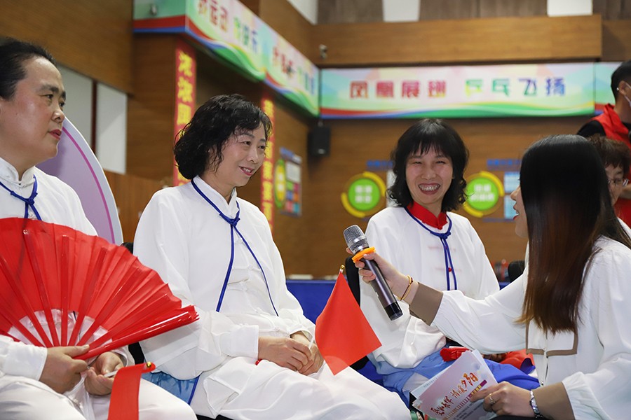 社区太极拳队带来舞蹈《太极扇》。