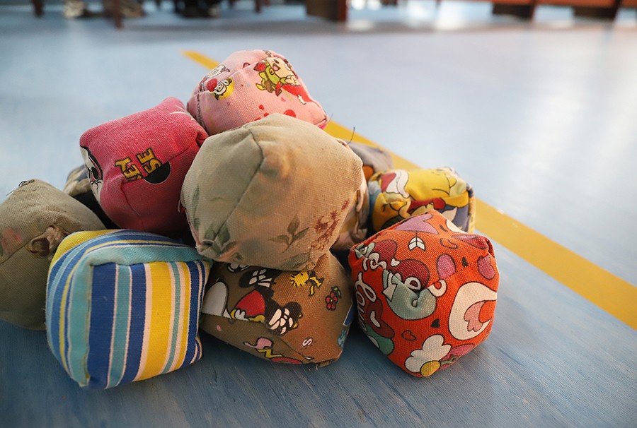 “幸运的口袋”游戏规则是每个参赛者要将10个口袋投向指定的圆圈内,投中高分者为胜。在现场,投得准的直接就能“砸中”50分,投得不准的不止得不到高分,还会连圆圈都进不去,笑得围观者直揉肚子。