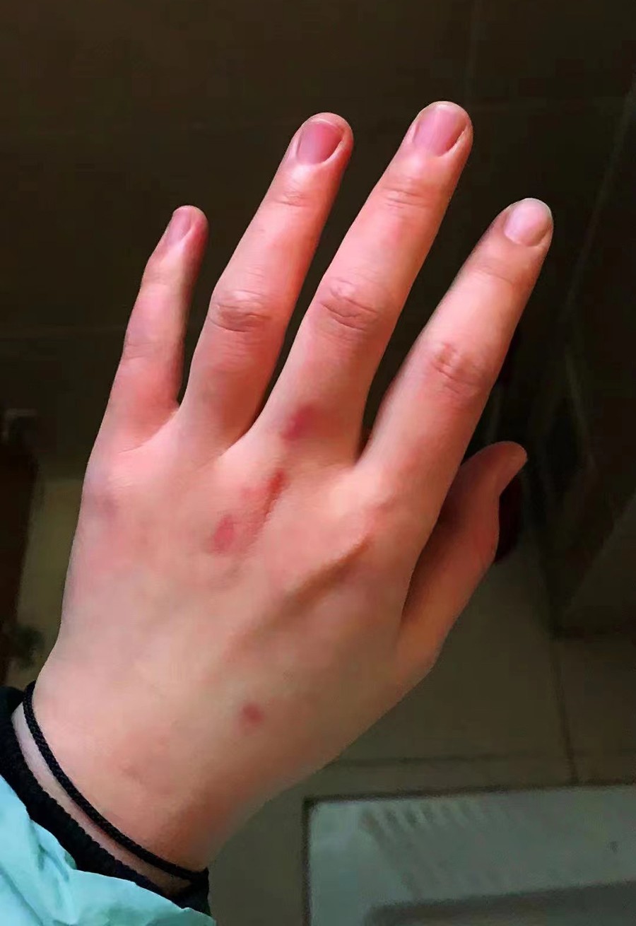 从医院整装出发后,战疫号角也随之吹响。她们在大巴车上分配好工作任务点,来不及安顿,直接投入到工作中。3月初的长春,风中依然带着寒冷,一场春雪悄然而至,风雪凛冽,气温骤降,六院人坚守在各自岗位上,咬紧牙关,与时间赛跑,与寒冷较量。工作中,大家经常会右胳膊抬到酸疼,左手指掰棉签掰到指尖肿胀,手被消毒液浸湿后变得冰凉。为了节约防护服,大家都尽量少喝水以减少上厕所的次数,由于昼夜温差大,白天被汗水湿透的衣服还没干,晚上的凉风吹来,在户外采样就会浑身打寒颤。