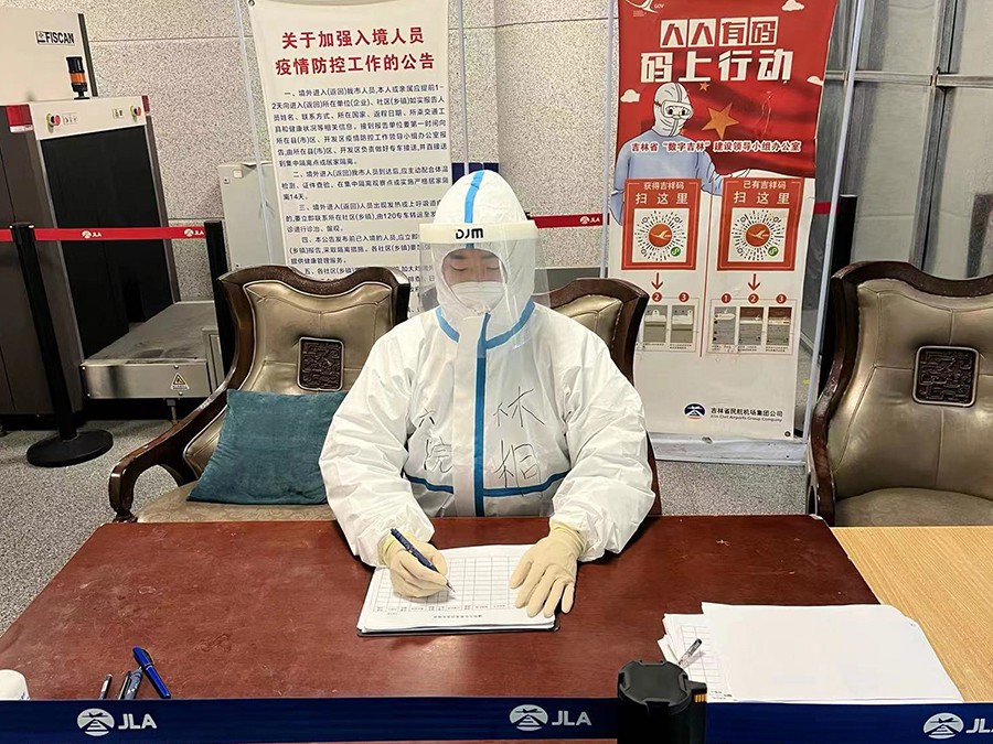 在机场防疫的工作中,林桐看到最多的场景就是重逢与别离,在这一年多防疫的日子里有一件事情让他印象最深。临近春节的时候,一位家在延边的朝鲜族老奶奶乘坐从青岛飞往延吉的航班,在长春中转。由于她属于入境旅客,需要由机场转运工作人员单独闭环将其转运到延吉,同时还涉及退票等问题。由于该旅客常年在韩国打工,汉语发音不标准,沟通起来有障碍,而且年纪较大,不会使用智能手机,也没有国内手机卡,此时她只能干着急,并且情绪很激动。见此景,林桐主动帮助老奶奶将飞机票退掉,并妥善进行转运。困难得到了解决,老奶奶很开心,一个劲地感谢林桐。