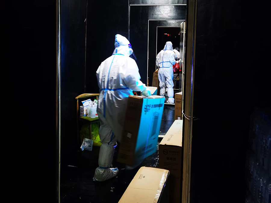 隔离点里最多时有300多人,为了缓解物业人员送餐压力,工作初期,王硕主动加入到送餐小组。他和队友们为隔离人员送去三餐,保证他们按时吃饭,等大家都吃上饭了,他再端起有些微凉的饭菜,赶紧填饱肚子,“大家来这里,心里压力肯定大,保证大家吃好才行。”4月20日傍晚,隔离点又新接收了37人,由于入住时间比较晚,错过了饭时,刚刚结束接收任务的王硕就又为他们送去晚餐,只为让他们吃口热乎的饭。