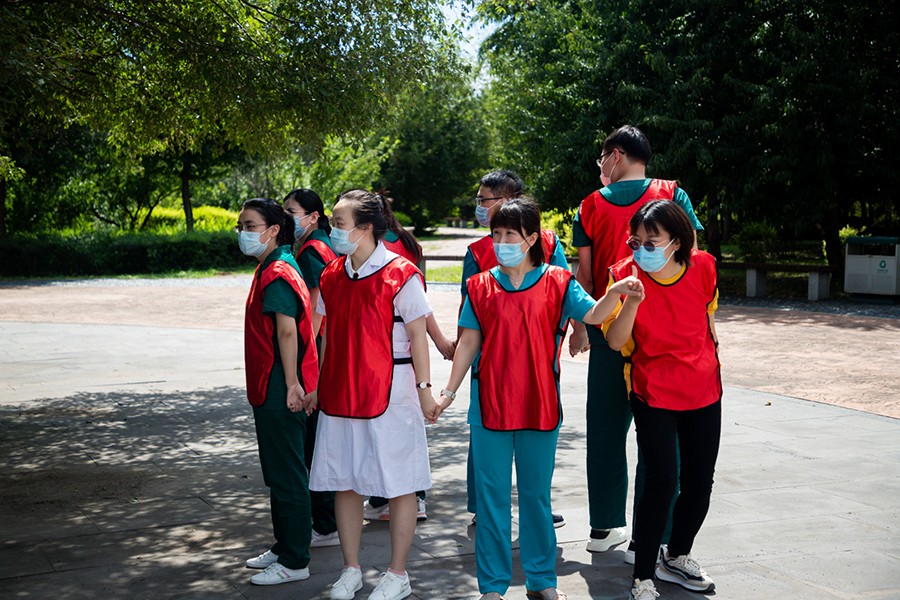 为了缓解医师们的工作压力,增进彼此之间的沟通交流,实现劳逸结合,8月17日,在线德州扑克网 举办了拓展活动。活动在康复科副主任梁博号令下拉开了帷幕。医生们分成五队,队伍间相互竞技。大家热情高涨的参加了“破冰行动”、“解手链”、“移行换位”、“穿越雷阵”、“抢滩登陆”等游戏。