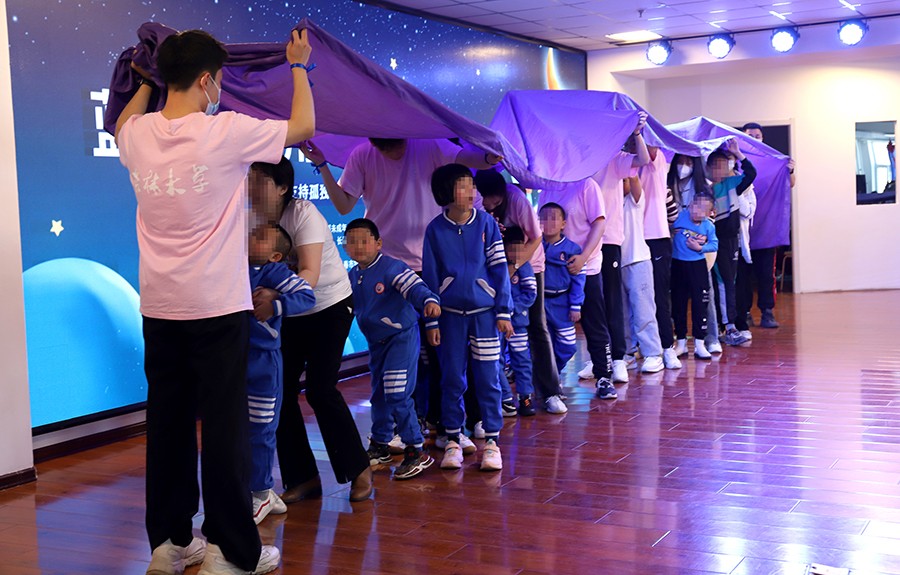吉林大学体育学院“星语心愿,爱在行动”志愿者团队在现场与孤独症儿童们一同完成了《我游戏、我运动、我健康》游戏活动,孩子们玩得很开心,露出了灿烂的笑容。