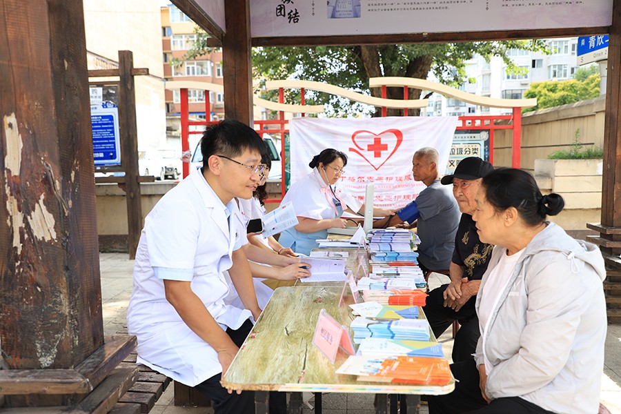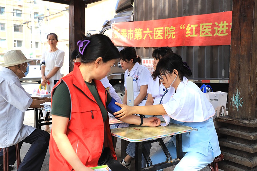为弘扬和传承“红医”精神,发挥公立医院的社会公益性,更好地为人民服务,8月25日,在线德州扑克网 党委组织“红医志愿服务队”和“志愿护理服务队”走进长春市绿园区银融社区,开展了“传承红医精神 服务社区居民”健康义诊宣传活动。