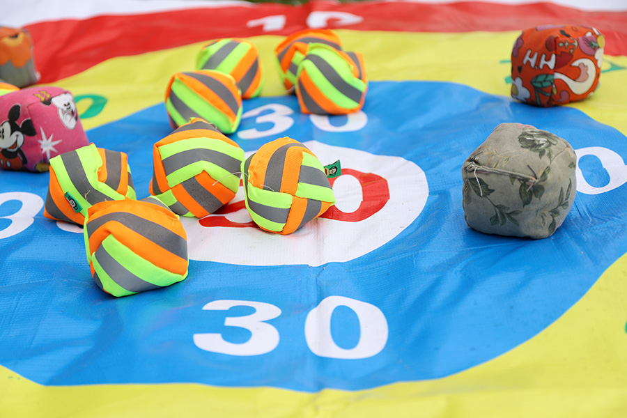 陆地冰壶欢乐多:考验队员投掷准确度的比赛来啦!在陆地冰壶活动中,队员们自由享受着投壶比拼智慧发挥的乐趣。大家表示,追求高分就有脱靶的风险,不能寄希望于对手失误,而是需要稳扎稳打地拿分,确保总分获胜。