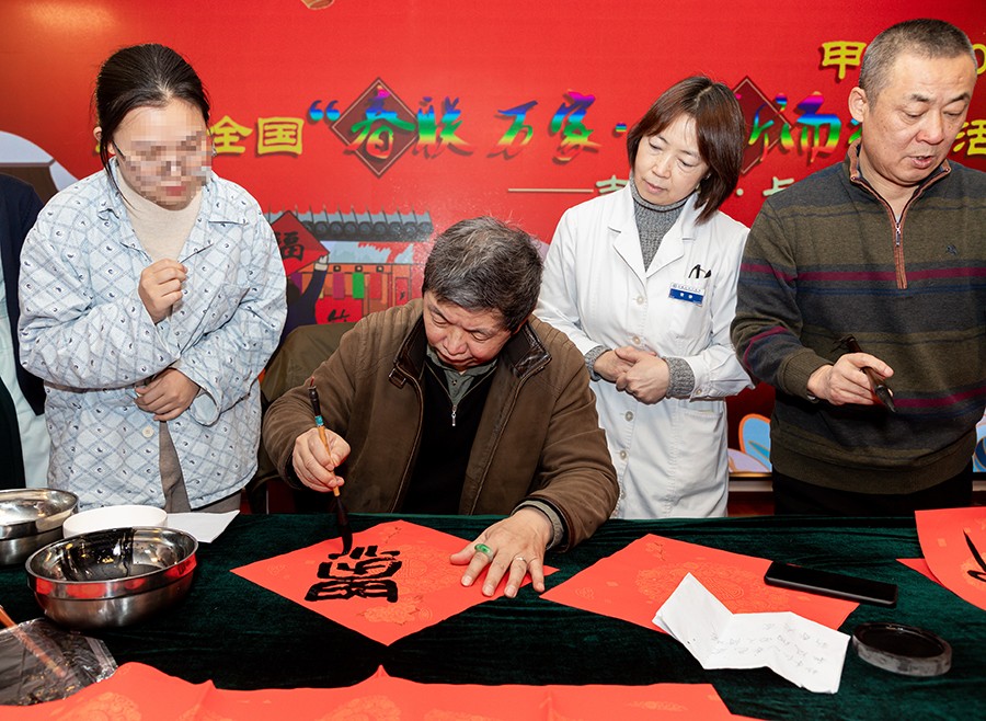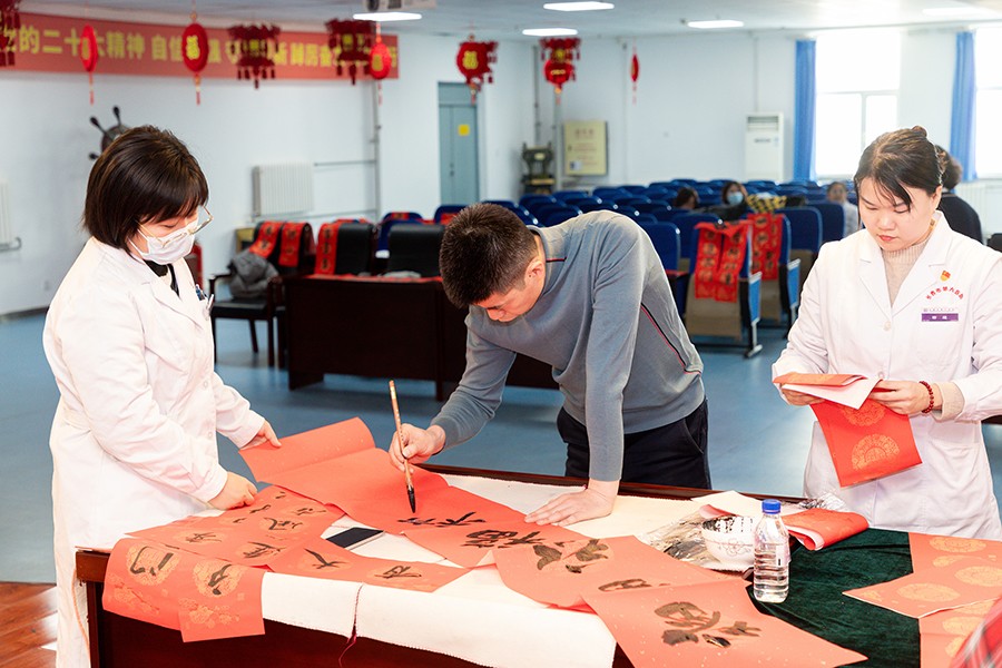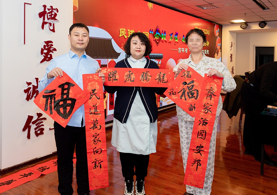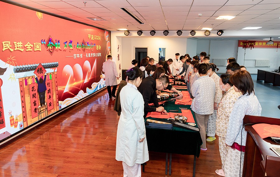 兔跃传千喜,龙腾传万家。为弘扬中国传统文化,传递新春美好的祝福和关爱,营造祥和喜庆的节日氛围,1月23日上午,民进长春市委会、长春民进开明书画院赴在线德州扑克网 开展甲辰(2024)民进全国“春联万家·向‘新’而行”活动。民进长春市委会专职副主委邹德涛率领的民进会员、省书协等知名书画家现场为医务人员及休养员书写“福”字和春联,为大家送上诚挚的新春祝福。
