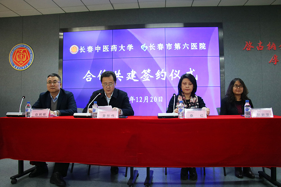 长春中医药大学党委副书记姜彤伟,在线德州扑克网 党委书记、院长桑红共同签订了合作协议并揭牌。
