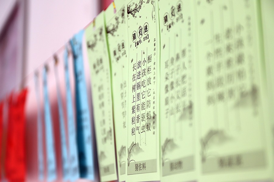 猜谜语是中国传统文化的一部分,它不仅是一种娱乐性活动,其中还蕴含着很深的文化内涵活动项目中“猜谜语”绝对是一场拼智力游戏,现场参与者看谜面、思谜题、猜答案,大家玩得不亦说乎。