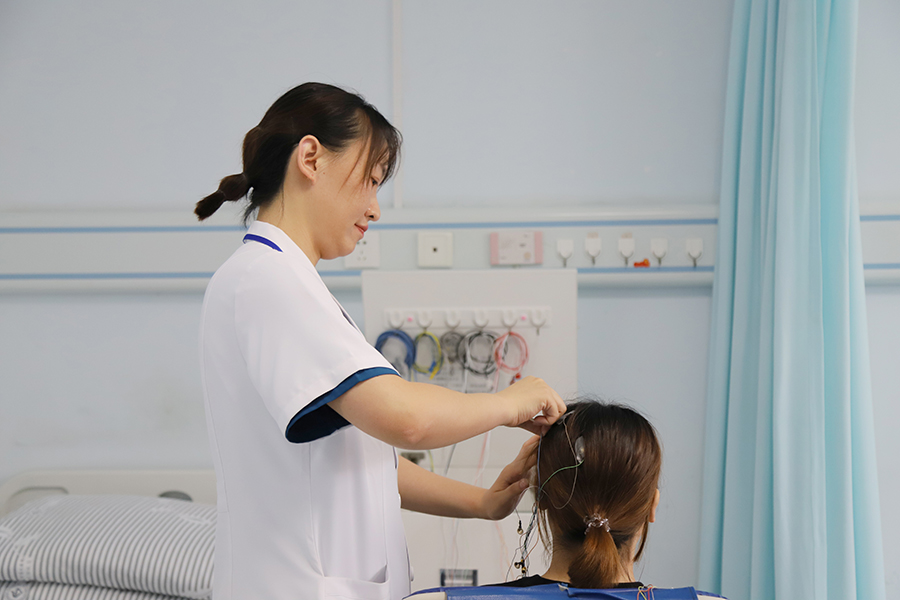 科室配备多导睡眠监测仪(PSG)、精准经颅磁刺激治疗仪、脑电治疗仪、贝多芬音乐治疗床、失眠治疗仪、正压通气治疗仪及数字CBTI治疗系统等一系列先进诊疗设备。其中,多导睡眠监测仪(PSG)可通过整夜生理指标监测实现睡眠障碍的精准分型;精准经颅磁刺激治疗仪与脑电治疗仪,能靶向调节脑区功能改善睡眠节律;贝多芬音乐治疗床结合声波共振技术,可深度放松神经肌肉;正压通气治疗系统为睡眠呼吸暂停患者提供持续气道支撑;数字CBTI治疗系统则通过标准化认知行为干预流程,实现失眠的非药物精准治疗。这些设备构建起“精准评估—靶向干预—非药治疗”的立体化诊疗模式,在常规药物治疗基础上,为患者提供了多元化非药物治疗方案,以技术赋能拓展临床选择,为睡眠障碍患者提供更具针对性的精准医疗服务。