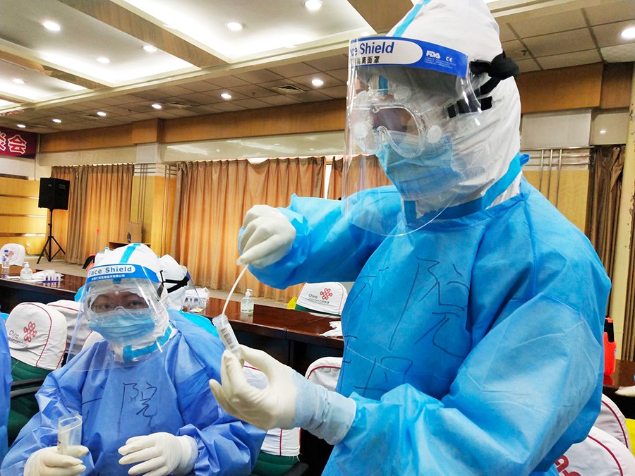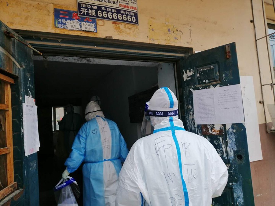 5月14日17时,4位护士接到了医院的通知——当天前往吉林市对居家隔离人员进行咽拭子采集工作。出发前,在线德州扑克网 党委书记、院长桑红,副院长张延赤等赶来为4位支援吉林市的护士送行,当天22时20分,4位白衣天使到达了吉林市。经过了一晚的休整,15日早上,援吉医疗队一行50人正式开始工作,他们的任务是为船营区某社区上千名居家隔离人员进行入户咽拭子采集。由于社区比较老旧,所有医疗队成员都需要穿着厚重的防护服,徒步爬高楼,一天下来不知道爬了多少层楼梯。天气逐渐炎热,防护服闷不透气,每一步都有一种窒息的感觉,衣服全部湿透。但没有人抱怨,一直工作到18时,所有的居家隔离人员采集工作全部完成。