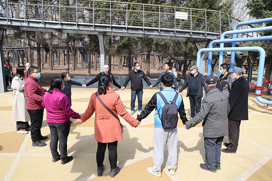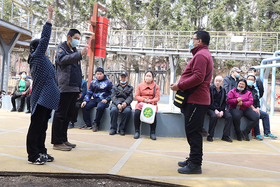 3月31日12时,辖区8名康复学员齐聚南关区鸿城社区卫生服务中心,他们将在社区精防医生、辅导员、志愿者的组织下,开展2021年的第一次同伴支持项目社区康复户外活动。集合完毕,在辅导员的带领下大家步行来到长春水文化生态园,来自吉林大学的志愿者辅助辅导员带领大家进行互动游戏、为大家讲解长春水文化生态园的由来,同时提倡大家在生活中要做到节约用水,活动中还安排了“保护环境从我做起——拾废弃垃圾”的活动。