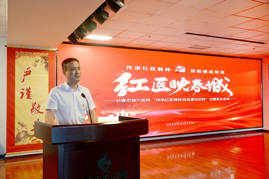 活动中,院党委书记张延赤做了重要讲话。对疫情期间党员同志们坚守岗位、顾全大局、勇于担当和奉献表示充分肯定,激励全院党员弘扬伟大抗疫精神和“红医精神”,立足岗位做表率、当先锋,团结一心、奋发有为,为医院发展立新功。同时,对全院党员提出了要求:一是要牢记初心使命,继续践行责任担当。绷紧疫情防控这根弦,克服麻痹思想、侥幸心理、松劲心态,不断巩固防控战果;二是要带头提高自身本领。在疫情常态化的情况下,提升应对突发重大公共卫生事件的能力和水平,切实保障人民群众心身健康和生命安全;三是要将伟大抗疫精神和“红医精神”转化为干事创业、攻坚克难的磅薄力量,勠力同心、锐意进取,同心协力为医院发展努力做贡献,以实际行动为党的二十大胜利召开献礼。