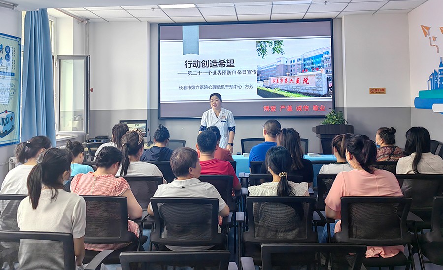 每年的9月10日是“世界预防自杀日”。为宣传预防自杀和心理危机干预的相关知识,提高公众对自杀问题严重性的认识,9月8日上午,心理危机干预中心主任方芳、心理援助热线咨询师付立平,精防所工作人员张艳霞、韩维荣组成义诊团队,走进朝阳区红旗社区,为广大居民提供心理健康服务。现场,方芳主任以“用行动创造希望”为主题开展科普讲座,从“容易选择自杀的人群”“自杀前的十个征兆”“怎样减少自杀行为”“如何诊断自杀行为”“如何预防自杀行为”5个方面向居民进行讲解,帮助大家了解诱发自杀行为的危险因素,增强了人们对不良生活事件的应对能力。
