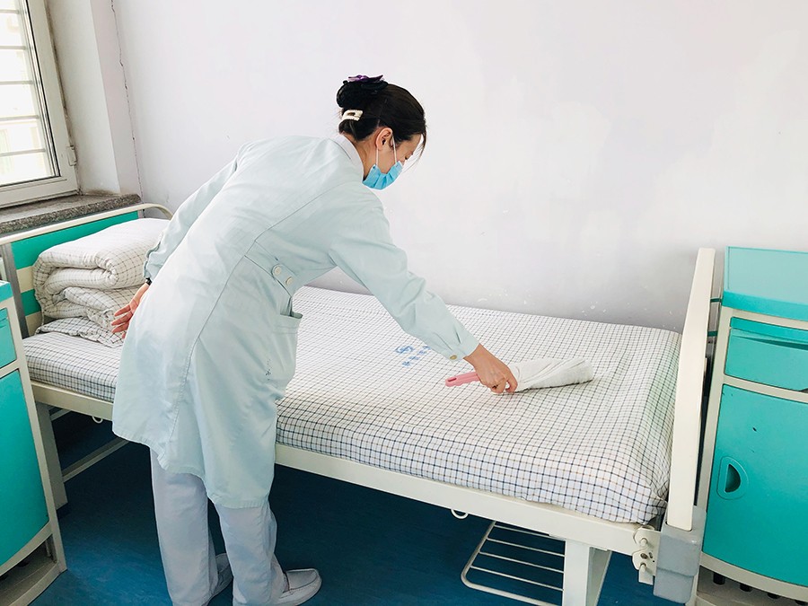 医院就是战地,病房就是战场。短短一天时间,医疗党支部全力配合医院完成了值班人员值班安排、病房隔离设置、工作职责任务重新分配、应急预案制定演练、发热病人应急处置等工作。面对8个精神科病房、200余名精神疾病患者,175位医护人员24小时轮流值守,14天为一班,与患者同吃同住,随时关注着患者服药、语言、行动、情绪、饮食等方面的反应,把他们照顾得无微不至。