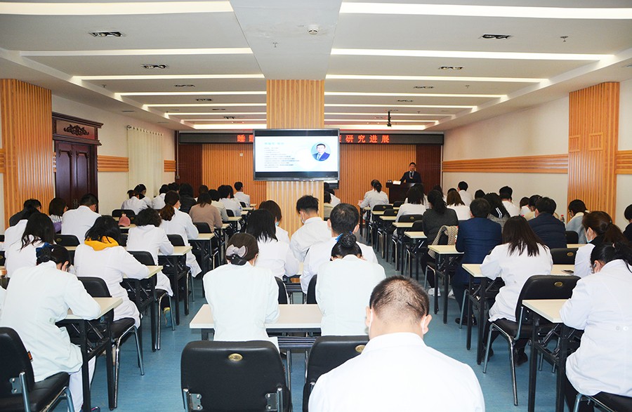 仪式结束后,贾福军教授为全院医生、护士长、实习学生、医联体单位医生及社会心理服务工作者开展了一场关于“睡眠时长与心身健康研究进展”的专题讲座。他从不同年龄段所需睡眠时长开始谈起,并重点就睡眠时长相关风险,睡眠时长与肥胖、神经内分泌异常、糖尿病及情绪疾病等的关系进行了深入讲解,使与会的医护人员进一步了解了睡眠时长与心身疾病的关系,受益匪浅。