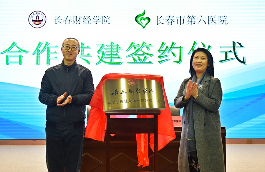 现场,桑红院长与刘成立副书记代表双方签订了合作共建协议并共同为“长春财经学院学生心理健康指导与研究基地”揭牌。