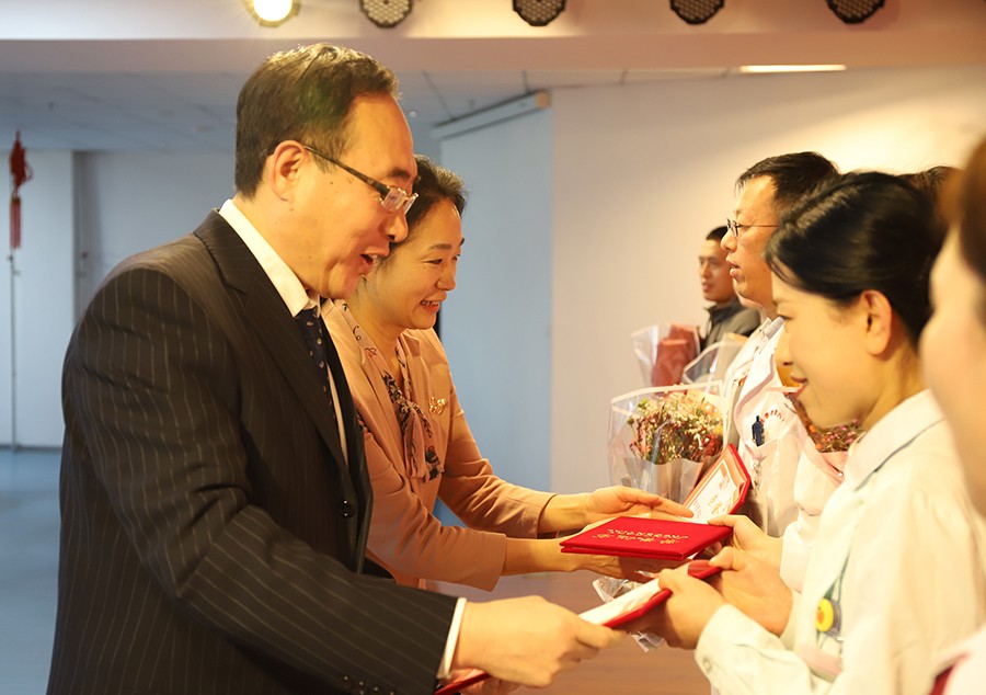 玉虎瑧福辞旧岁,金虎圆梦际新春。在这辞旧迎新的日子里,在线德州扑克网 在六院版《起风了》的歌声中拉开了2021年度总结表彰大会的帷幕。在线德州扑克网 党委书记、院长桑红,副院长钱锋、郑广翔、董勇及工会主席商海杰,为受到表彰的百余名医护人员颁奖。