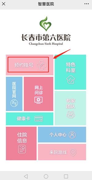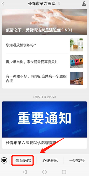 1、进入医院微信公众号点击“智慧医院”进入预约挂号;