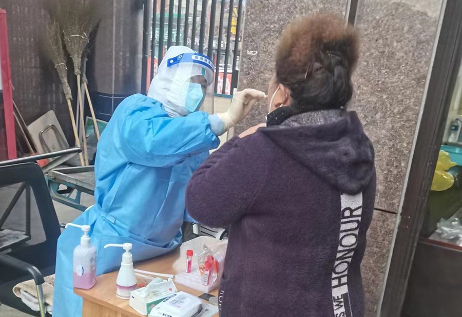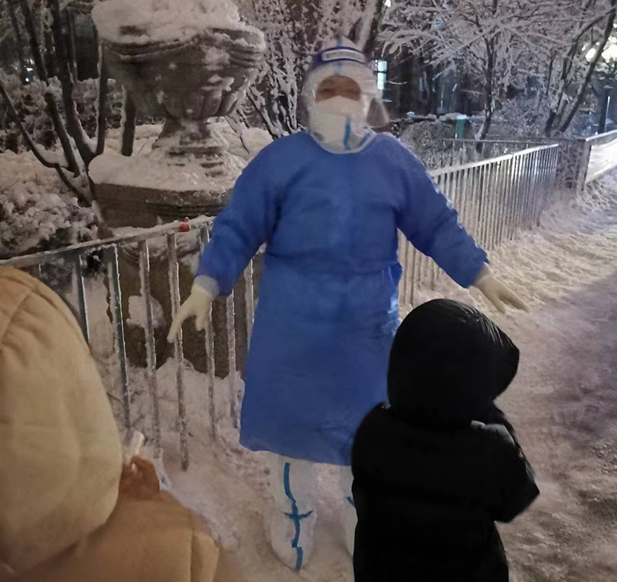 ▶感动·收到隔空的生日祝福:3月15日,雪花漫天飞舞,5点30分郭艳红就前往采样点,一直工作到18点结束。当她得知队友要到她家小区进行核酸采样时,便又向领队申请支援小区的核酸采样工作。当时外面的雪还在下,郭艳红完成工作时已是次日0点。此时,她的两个孩子在不远处拿着生日礼物喊着她,那时候她才记起今天是自己的生日,可是她无法亲手接收孩子们为她准备的生日礼物,也无法靠近孩子,而孩子们也只能隔空喊了声:“妈妈,生日快乐!”