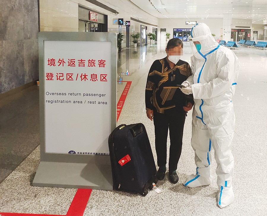 在机场防疫的工作中,林桐看到最多的场景就是重逢与别离,在这一年多防疫的日子里有一件事情让他印象最深。临近春节的时候,一位家在延边的朝鲜族老奶奶乘坐从青岛飞往延吉的航班,在长春中转。由于她属于入境旅客,需要由机场转运工作人员单独闭环将其转运到延吉,同时还涉及退票等问题。由于该旅客常年在韩国打工,汉语发音不标准,沟通起来有障碍,而且年纪较大,不会使用智能手机,也没有国内手机卡,此时她只能干着急,并且情绪很激动。见此景,林桐主动帮助老奶奶将飞机票退掉,并妥善进行转运。困难得到了解决,老奶奶很开心,一个劲地感谢林桐。