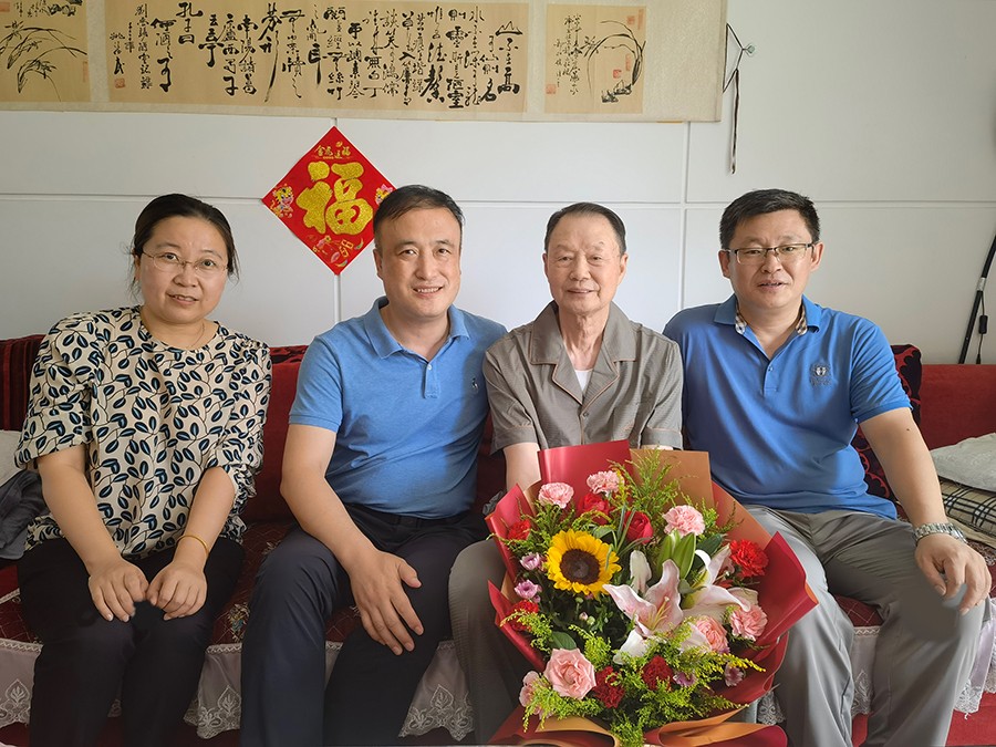 在医师节即将来临之际,在线德州扑克网 党委书记张延赤、副院长郑广翔、医务科科长吴琼一起来到了两位退休老专家赵立中和张丽华家里,为他们送去了节日的问候。每到之处,院领导与老专家亲切交谈,询问其工作情况及身体状况,感谢他们数十年如一日坚守在临床一线,为服务百姓健康及推进医院发展的辛勤付出和无私奉献,希望他们保重身体,为医院发展建言献策。
