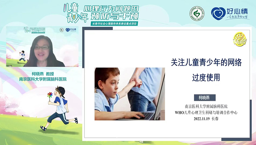 ▲南京医科大学附属脑科医院儿童心理卫生研究中心所长柯晓燕教授分享了题为 “关注儿童青少年的网络过度使用”的报告。