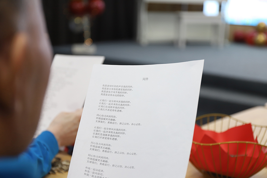 在这次充满喜庆和浓浓年味儿的活动中,坐在同伴中间的孙大哥也分外开心。他说每次与同伴分享自己的想法和观点时,大家都会积极参与、热烈讨论,在舒缓的氛围中,让自己更自信、乐观地面对疾病和生活。“在康复师、辅导员和社工的帮助下,我参加了三年同伴支持活动。从原来在家人的照顾下生活,现在已经可以正常进行社会活动了,药量在医生的建议下也有所减少。老伴和孩子特别支持我参加活动,我也会继续努力将自己的心得分享给大家,让我们都有新的生活。”