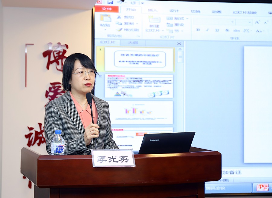 ▲长春中医药大学附属医院脑病中心心理科副主任李光英教授将“失眠的中医治疗”做为专题报告,对中西医结合治疗失眠的相关学术热点和进展进行了分享。