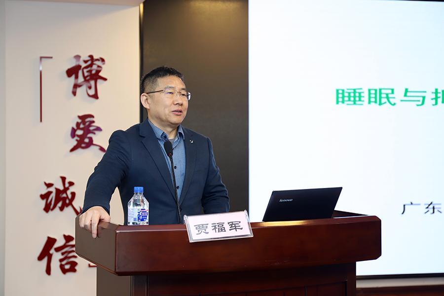 ▲广东省精神卫生中心主任贾福军教授以“睡眠与抑郁症关系研究新进展”为题分享了睡眠和抑郁症间的相互影响。