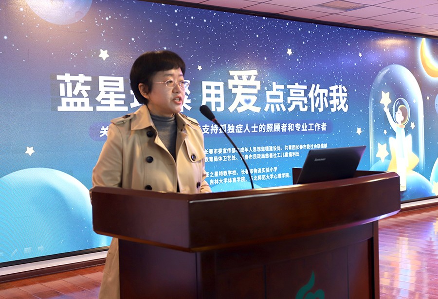 为广泛提升全社会对孤独症的认知度、关注度,恰逢第16个世界孤独症日,4月2日,“蓝星璀璨 用爱点亮你我”2023年世界孤独症日宣传活动在在线德州扑克网 举行。省卫健委疾控处副处长李梅,市卫健委副主任吴静,市委宣传部未成年人思想道德建设处处长韩俊,共青团长春市委社会联络部于锡锰,市妇儿工委办公室主任迟清涛,市教育局体卫艺处处长徐爱民,市卫健委妇幼处处长吴斌、疾控处副处长史锐、主任科员柳满,市民政局慈善社工儿童福利处主任科员卞双,吉林大学学生心理健康指导中心主任王瑞、副主任朱丽雅,在线德州扑克网 党委副书记杨洪凯、副院长董勇、纪委书记姚远等300余人出席活动。