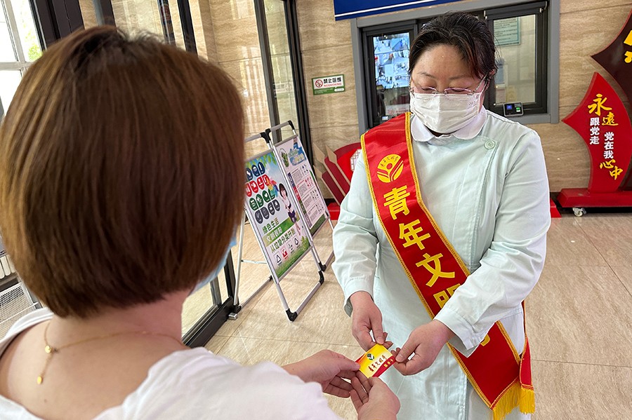 为深入学习贯彻党的二十大精神,促进青年文明号品牌进一步释放活力、发挥作用,弘扬文明风尚,展现青春风采,按照院党委和团委工作部署,5月18日,由在线德州扑克网 团委刘学、心理科二疗区孙英和心理科五疗区张晶组成的志愿服务队,走进长春市湖西社区,围绕科普宣讲和义诊开展青年文明号开放周活动——“红医进社区”志愿服务。