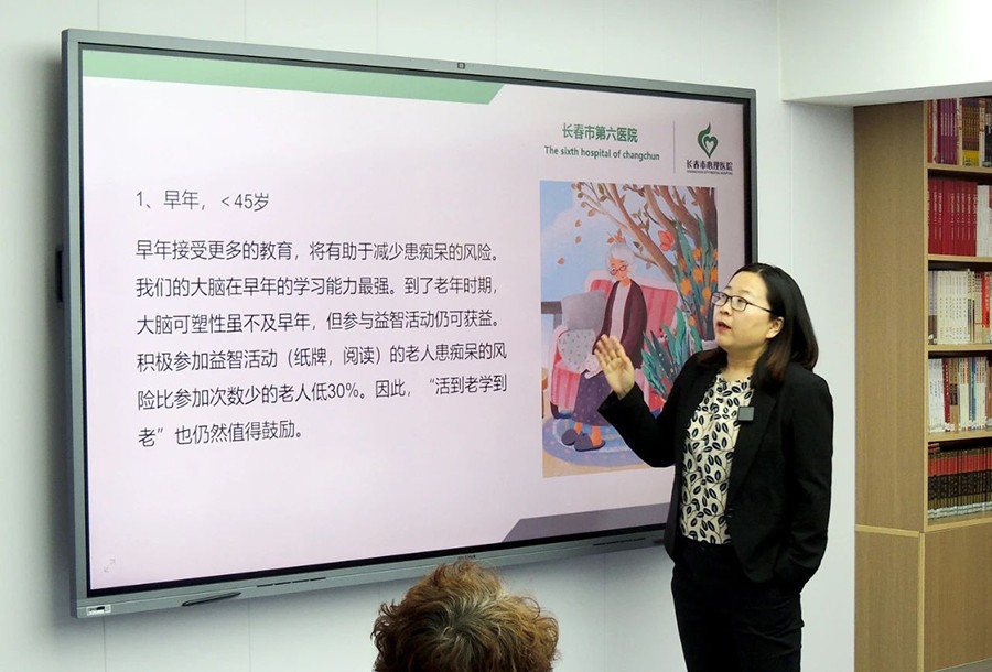 来自南昌社区的20余位居民,在吴琼的带领下,开启了预防阿尔茨海默病的学习之旅。她将理论知识与生活实例相结合,从“阿尔茨海默病的危害、致病原因、如何预防”等方面进行了讲解,帮助大家系统地了解该疾病。