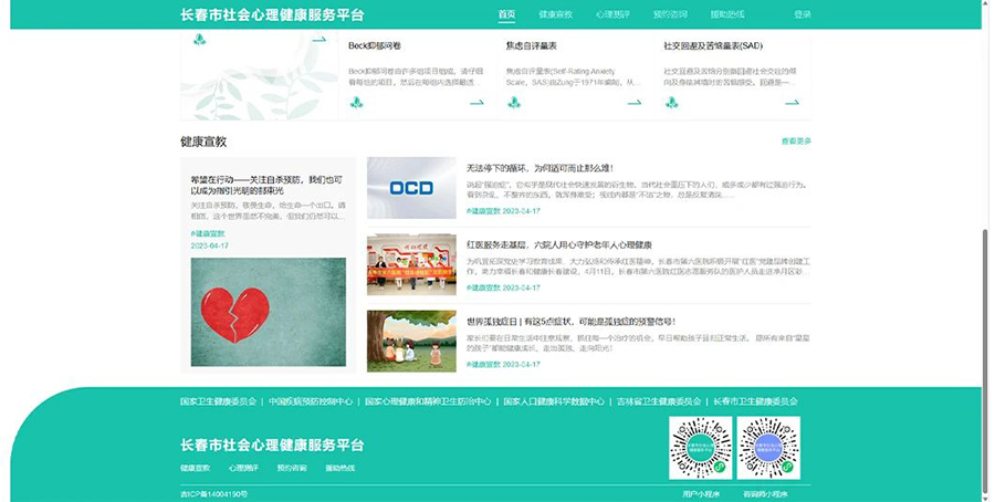 依托在线德州扑克网“长春市社会心理健康服务平台”技术优势,为“工会服务圈”内有心理服务需求的广大职工提供健康教育、心理疏导、危机预警等多样化社会心理服务项目,可全面覆盖职工群众、重点人群等各类人群需要,加强社会心态预测预警,定期开展分析研判和风险估计。其中,有需要的职工可通过电脑网页登录“长春市社会心理健康服务平台”门户网站(//ywxt.dzpokerweb.com/)进行登录注册;手机端搜索微信小程序“长春市社会心理健康服务平台”,对新闻动态、健康宣教、心理测评、心理课堂、用药指导、预约咨询、援助热线7个免费开放栏目,进行浏览和咨询;针对“工会服务圈”内从事心理学的专业人士,还提供了心理咨询师注册、技能提升、在线考试等业务学习模块。