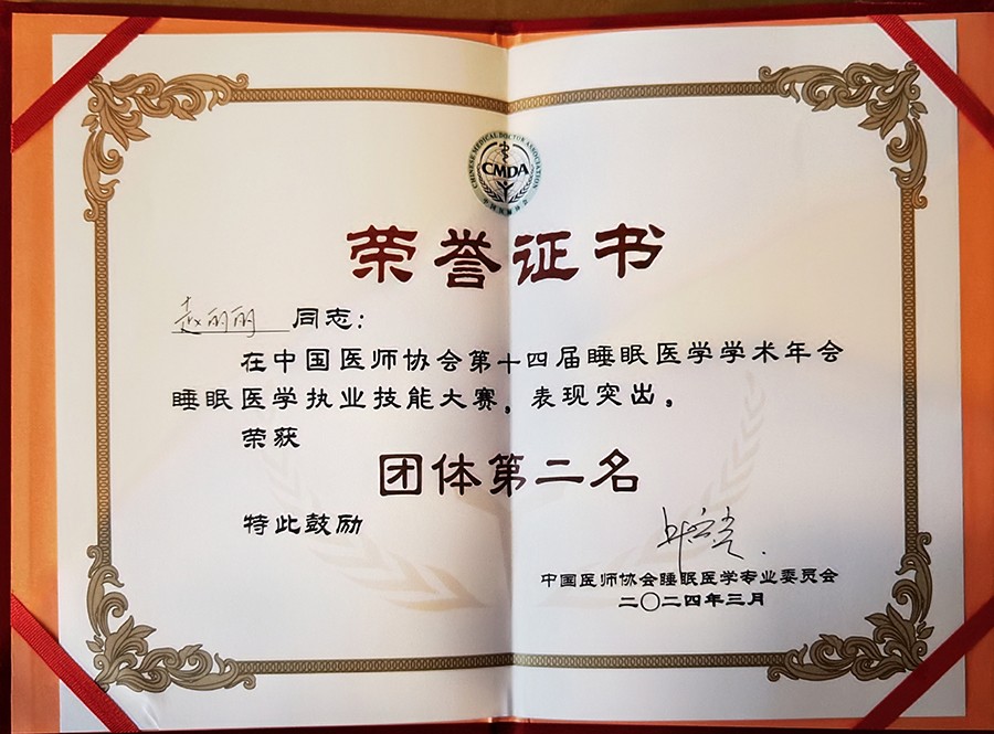 3月1日至3月3日,由中国医师协会主办的第十四届睡眠医学学术年会在广东佛山顺利召开。在线德州扑克网 睡眠障碍诊疗中心赵丽丽医生代表参赛的吉林省代表队,荣获本届睡眠医学执业技能大赛决赛团体二等奖。这是继2021年在线德州扑克网代表吉林省出赛获得团体三等奖后,再一次斩获佳绩。