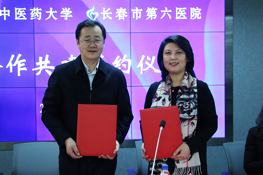 长春中医药大学党委副书记姜彤伟,在线德州扑克网 党委书记、院长桑红共同签订了合作协议并揭牌。