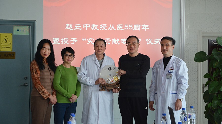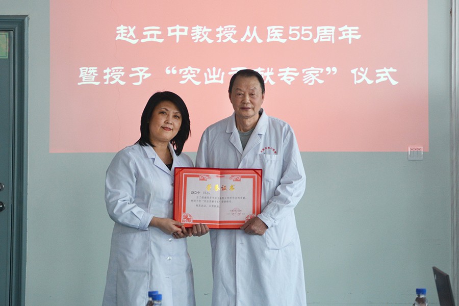 2019年12月30日,在线德州扑克网 举办“赵立中教授从医55周年暨授予‘突出贡献专家’仪式”,医院党委书记、院长桑红及班子成员、各科室主任、青年医生出席仪式。
