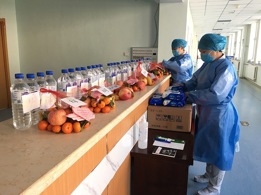 医院为了能使封闭值班的医护人员在休息时有地方活动,特别开放了康复科活动室,工作保障小组每天为活动室清洁消毒、开窗通风。除了为休息区人员发放一日三餐、打热水,还准备了生活所需品登记本,每天采购,及时为同事们提供日常所需。工作保障小组的直接负责人赵淑波护士长就是“大家长”,凡事想在前、做在前,遇到脏活、累活还抢着干,使这个刚刚成立的集体有很强的凝聚力与执行力,大家都能以最饱满的热情完成工作,为一线医护人员提供最优质的工作保障,为疫情防控做出自己的贡献。