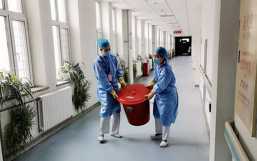 每天早上8点,工作保障小组成员准时到岗,换好隔离衣,戴好帽子、口罩、手套,倾倒完值班人员的生活垃圾后,开始对走廊地面进行清洁消毒,对全休息区卫生进行无死角打扫。每天清洁300米走廊成为了首要体力活,还要对走廊灯开关、病房门把手每日消毒两次,再用干净湿毛巾擦拭,工作结束后,每个人都累得满头大汗......平时在家里都是掌上明珠,但工作起来秒变“女超人”。护士吕倩是一位哺乳期的妈妈,但她并没有因为自己的特殊时期提出特别的要求,当有人想要帮她一起干时,吕倩说:“没关系,每个楼层都很忙,我可以多跑几趟。”
