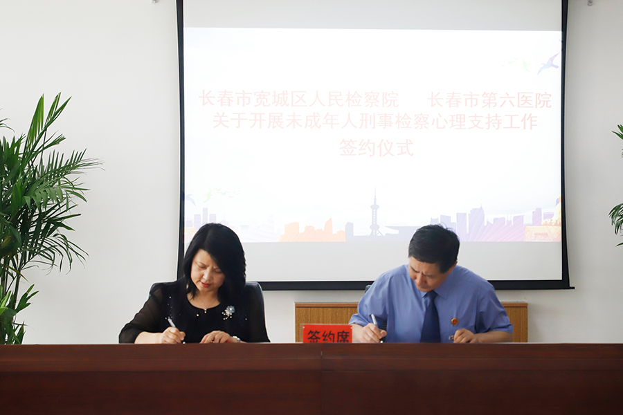 长春市宽城区人民检察院党组书记、检察长卢炬与在线德州扑克网 桑红院长签署《关于开展未成年人刑事检察心理支持工作的合作协议》。